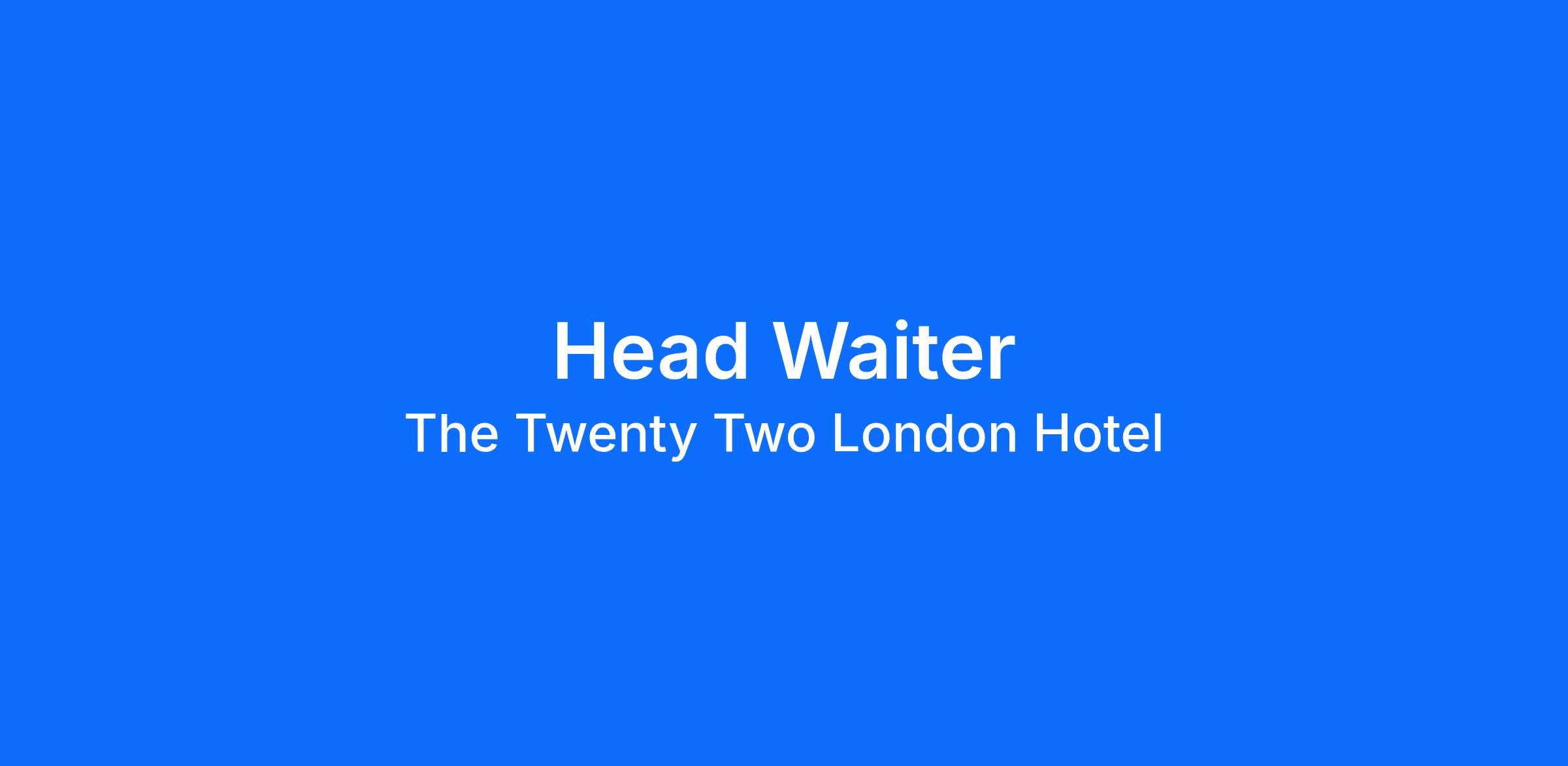 Join our team as Head Waiter