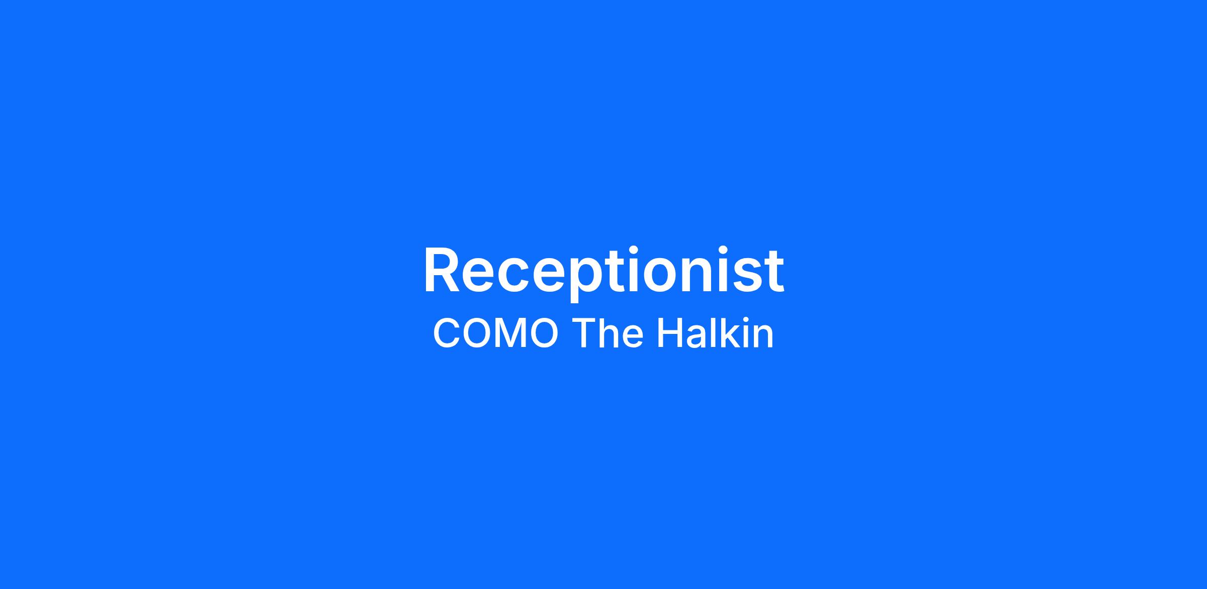 - As our receptionist you must represent the COMO brand and reflect our vision and values at all times.