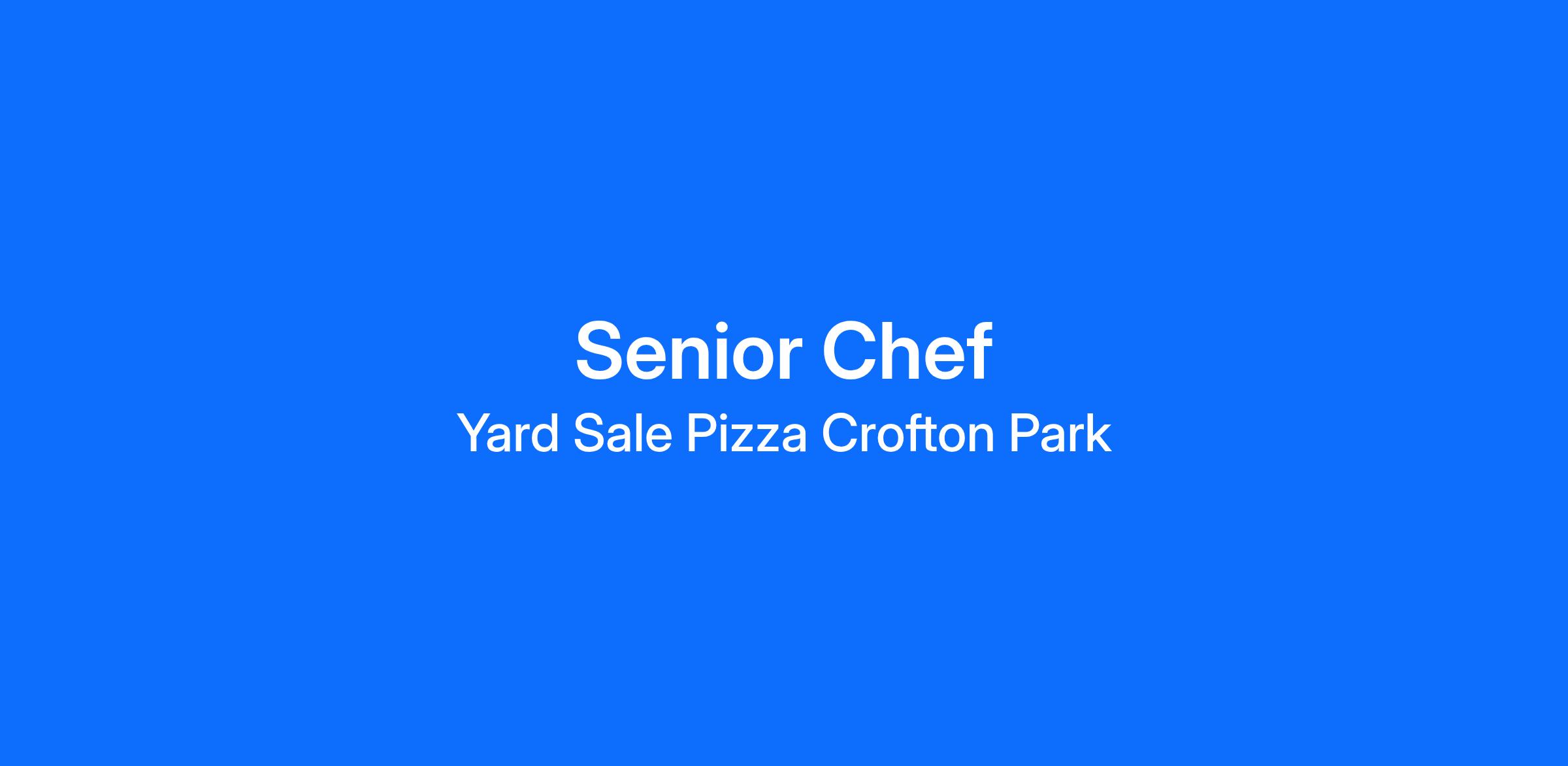 Yard Sale Pizza is on the search for a Senior Pizza Chef to join our amazing team! **Offering new loyalty incentive - extra 50p per hour paid after 1 years continuous service** Who are we? Yard Sale Pizza fired up the oven in 2014, starting with weekly supper clubs from our backyard in Hackney. We now offer delivery, dine-in and takeaway in 15 of our favourite neighbourhoods. Known for our collaborations, we’ve teamed up with illustrators, musicians, international chefs & local eateries- all on the quest for the perfect pie! Our love affair with South London continues! We opened our ninth Yard Sale Pizza in Crofton Park (between Brockley and Honour Oak Park) bringing our hand-made, hand-delivered pizza to the neighbourhood in 2021. We're offering up our ultimate delivery pizza, all delivered by our own amazing team of drivers, alongside a small but perfectly formed dine-in space. What will I be doing?